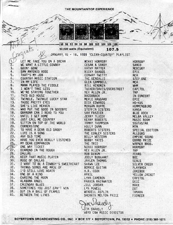 Below is the first #1 for Nikki Hornsby's song Let me "Take You On A Dream" in USA. in the State of PA at this offline commercial WBYO 50k radio station. She wrote that song while performing in San Pedro, CA where customers use to request oldie songs from her catelogue which is large. Plus she could play for old hits a medley in order for customers to dance & remember where they were back then as she would sing: "Let Me Take You On A Dream, let me walk you through the past..." in that style she wrote.